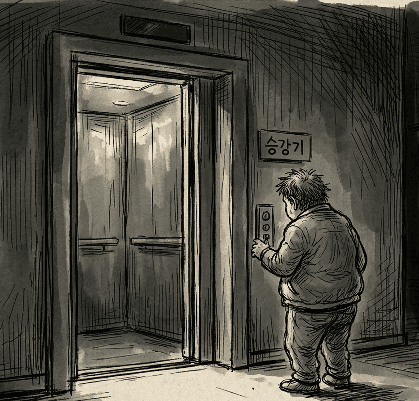 한 남자는 매일 아파트 엘리베이터를 탄다. 그런데 비 오는 날이 아니면 늘 중간 층까지만 타고 나머지는 계단으로 올라간다. 왜 그럴까?